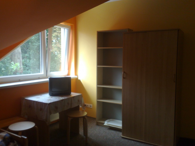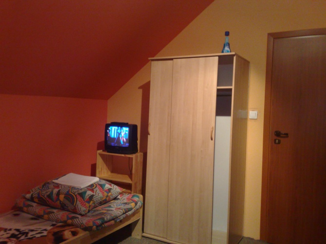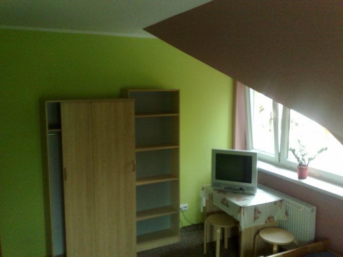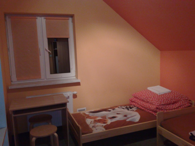 Pokoje gościnne znajdują się na pierwszym piętrze (wyjście po s.schodach) w wolno-stojącym budynku mieszkalnym, nowo wybudowanym. Lokale mają ok.12m2, na wyposażeniu znajdują się 2 oddzielne łóżka sypialniane, nakasliki, szafa 2 przesuwna, regał, lampka i biurko.