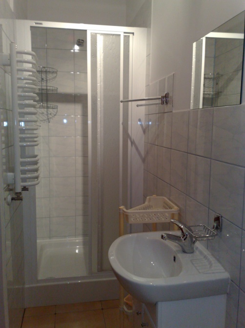 Każdy pokój posiada własną łazienkę z kabiną prysznicową, umywalką i ubikacją