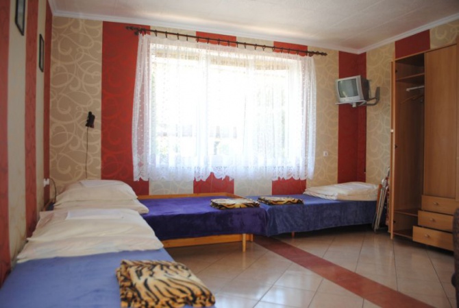 Oferujemy pokoje 2,3,4 osobowe z lazienkami znajdujemy sie w dzielnicy cichej i spokojne . Do plaży 450 m (okolo 10 minut) do jeziora 150 m . W połowie drogi do plaży znajduje się centrum sportowo-rekreacyjne i gastronomiczno-rozrywkowe.Naterenie miejsce do grillowania i biesiadowania. Trampolina dla dzieci.Do dyspozycji gości kuchnia ogólno dostepna.Mała w pełni wyposażona.