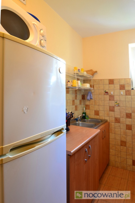 Na każdym piętrze znajduje się w pełni wyposażony aneks kuchenny. Posiada lodówkę z wydzielonymi na poszczególne pokoje półkami, palniki elektryczne, kuchenkę mikrofalową i naczynia.
