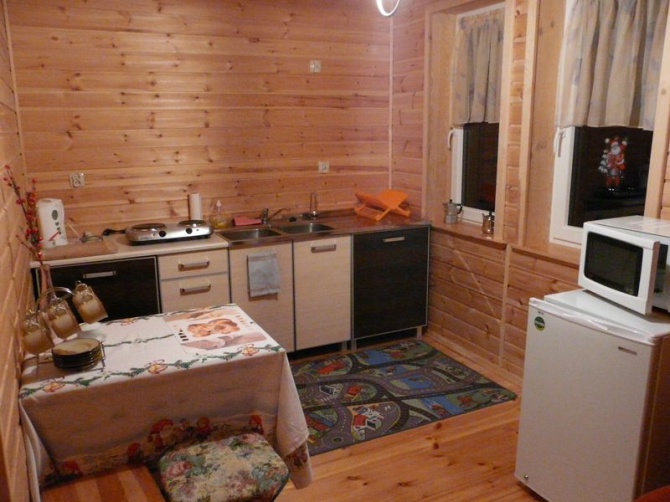Aneks kuchenny: lodówka, czajnik elektryczny, naczynia, sztućce, możliwość podgrzania posiłku (kuchenka elektryczna dwupalnikowa), garnki i podstawowe akceroria kuchenne, mikrofalówka (na życzenie);