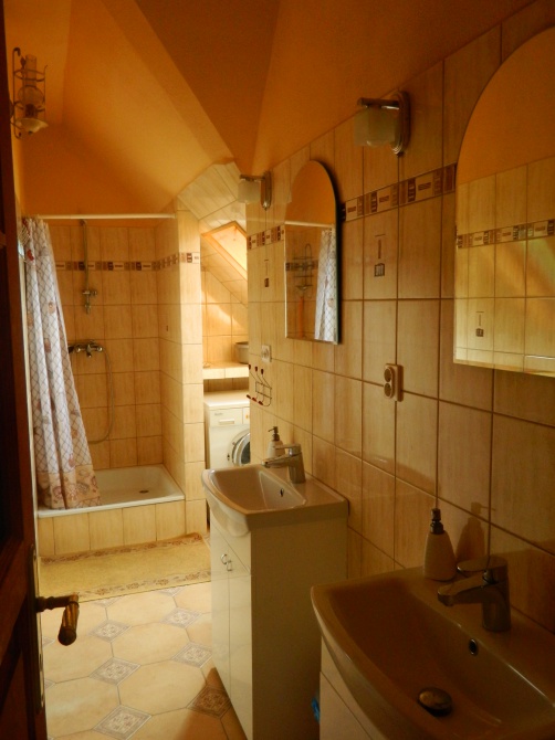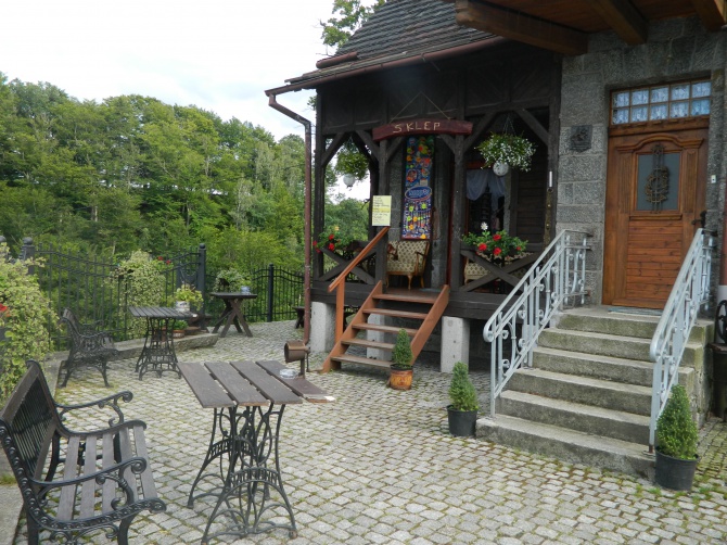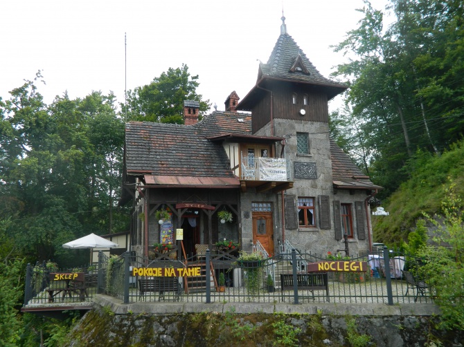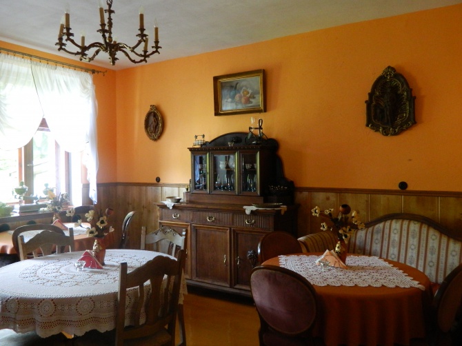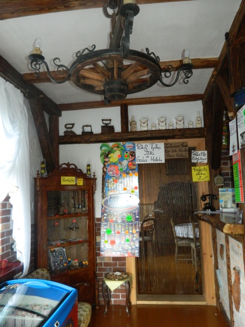 - Posiadamy na 1 piętrze 5 pokoi dla gości, 2 i 4 osobowe, które są zaaranżowane na stary styl. Mieści się tam duża łazienka z wc i prysznicem. Dla gości jest też piękny tarasik widokowy, na którym można posiedzieć. Na parterze znajduje się sklep spożywczy, w którym również można kupić pamiątki. Jest też pokój tylko dla gości pensjonatu, w którym można posiedzieć przy kominku i obejrzeć jakiś film. W tym też pokoju podawane są śniadania dla naszych gości. Na ogrodzonym podwórku, można posiedzieć i podziwiać Jezioro i Lasy. Taras znajduje się nad przepaścią 45 metrów, gdzie można podziwiać przy kawie elektrownie. Dla gości są przewidziane miejsca na auto, motor przy naszym domku.