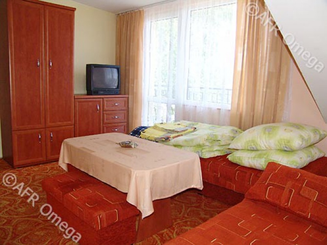 Dysponujemy pokojami 2,3,4 osobowymi z łazienkami lub bez. W każdym pokoju jest telewizor, radio, parawan, leżak, czajnik. Zapewniamy dostęp do kuchni i lodówki. Istnieje możliwość zaparkowania auta na posesji. Przy domu jest plac zabaw dla dzieci i miejsce na grill.