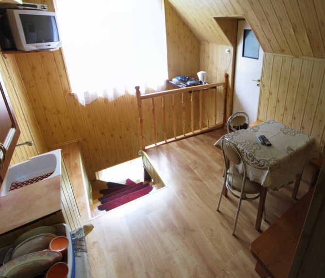 Domek położony jest w zacisznym miejscu z dala od gwaru miejskiego a zarazem niezmiernie blisko centrum uzdrowiska (200m). Dzięki lokalizacji na górce można rozkoszować się prześliczną panoramą.
