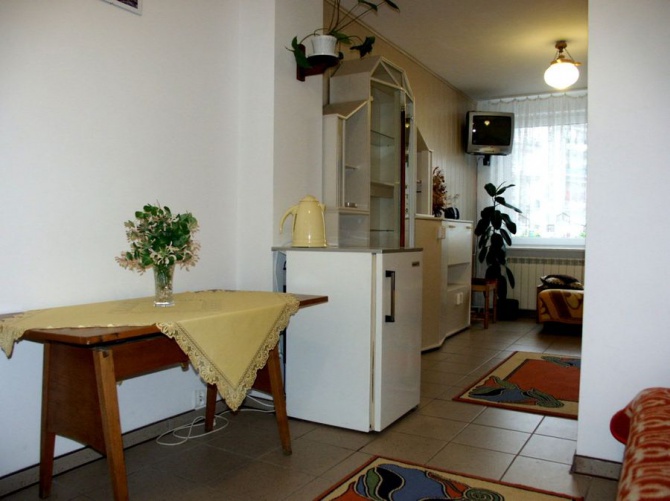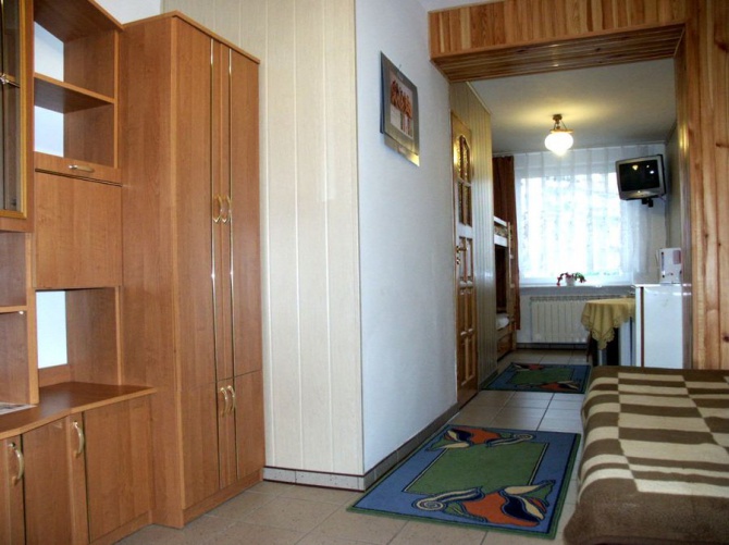 Proponujemy zakwaterowanie w nowocześnie wyposażonych pokojach (łazienki, TV, lodówki, radio, czajniki bezprzewodowe). Zapewniamy dostęp do wspólnej, w pełni wyposażonej kuchni. Jeden z pokoi posiada niezależny aneks kuchenny. Na terenie obiektu - bezpłatny dostęp do internetu Wi-Fi.