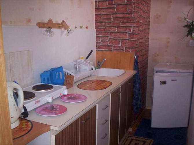 - Pokój wypoczynkowy z łazienką i aneksem kuchennym.
