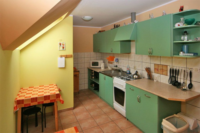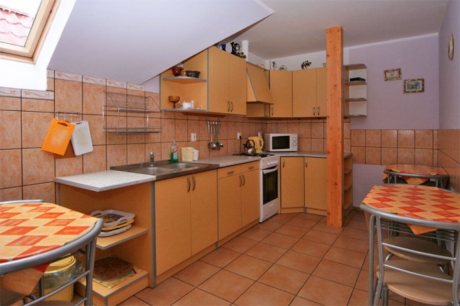 Do dyspozycji naszych gości pozostają także kuchnie z kompletnych wyposażeniem – niezbędne naczynia, sztućce, garnki, kuchenka z piekarnikiem, mikrofalówka.