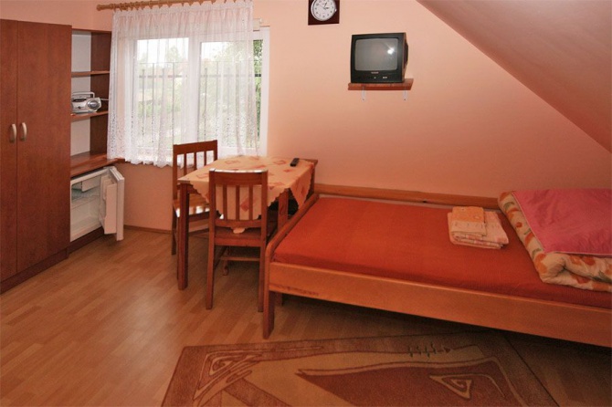 Wszystkie pokoje wyposażone są w TV - DVBT, radio, lodówki, oczywiście łazienki, Internet (w technologii Wi-Fi). Dla wszystkich naszych gości mamy nieodpłatnie parawany i koce plażowe.