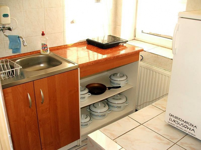 Dodatkowo na każdej kondygnacji budynku znajduje się wyposażony aneks kuchenny a na działce bezpłatny parking i grill.