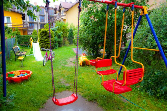 - dla dzieci piaskownica,huśtawka,zjeżdżalnia,bujak