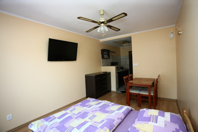 - Pokój 2 osobowy z aneksem kuchennym, balkonem, łazienka, TV 40”, WiFi -160 zł