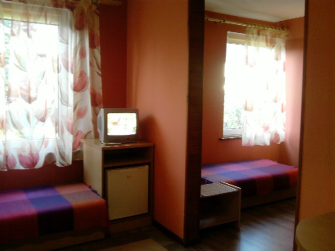 Nasz dom położony jest w spokojnej dzielnicy w bliskim sąsiedztwie centrum miasteczka jak i plaży i ujścia rzeki Łeby. Dysponujemy pokojami 1, 2,3 i 4 osobowymi na dwóch piętrach. Wszystkie pokoje mają pełny węzeł sanitarny. Na każdym piętrze przygotowaliśmy aneks kuchenny ( zlewozmywak, kuchenka, czajnik i komplet naczyń). W każdym pokoju jest TV i sprzęt plażowy, dodatkowo pokoje na 1 piętrze wyposażone są w chłodziarki. W obrębie posesji nasi gości mogą zaparkować samochód. Udzielimy profesjonalnej informacji o atrakcjach Łeby i jej okolicy /gospodarz posiada uprawnienia przewodnika turystycznego/.