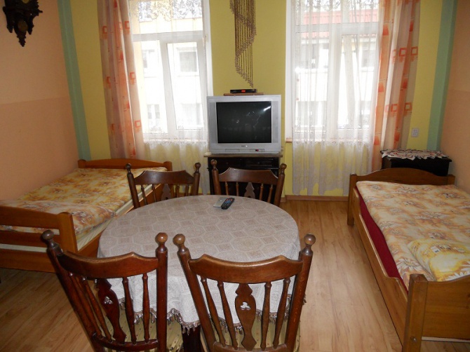 Samodzielne mieszkania dla 6-8 osób ,w pełni wyposażone dwu i trzy pokojowe w budynku dwupiętrowym, obok budynku parkingi.W ofercie również pokoje 2 -3 i 4 osobowe z łazienkami ,na terenie zamkniętym . 50m od morza ,dostęp do kuchni letniej do dyspozycji sprzęt plażowy i rowery .