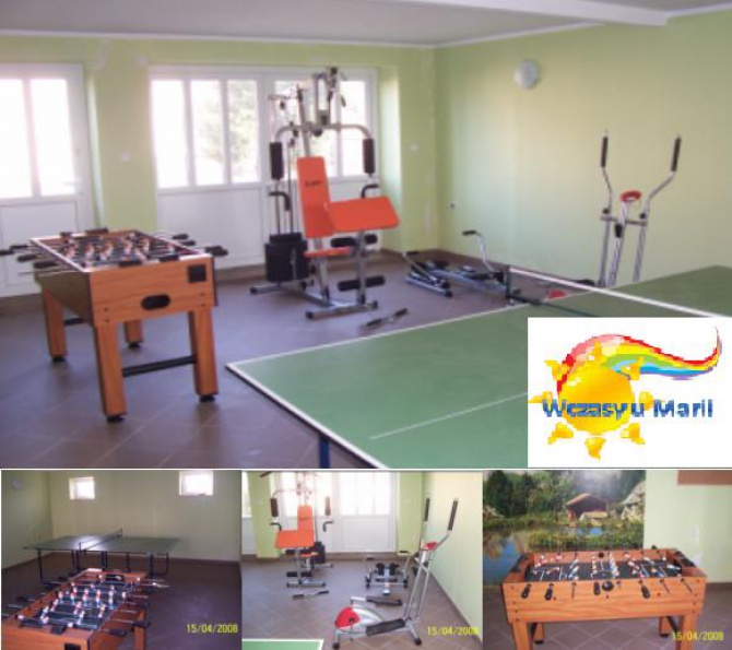 Na terenie naszego obiektu znajduje się duży ogród, plac zabaw dla dzieci, boisko do siatkówki, piłki nożnej i dwa zadaszone miejsce na grilla oraz bezpłatne miejsca parkingowe na ogrodzonej posesji, która ma 6000 m2 . Obiekt jest wyposażony w salę do tenisa stołowego, mini siłownie oraz piłkarzyki.