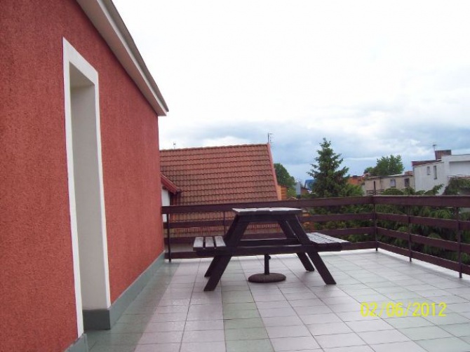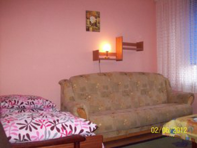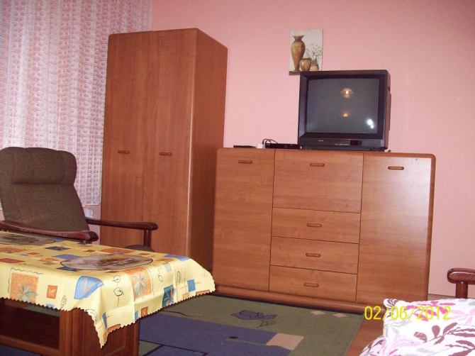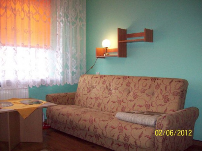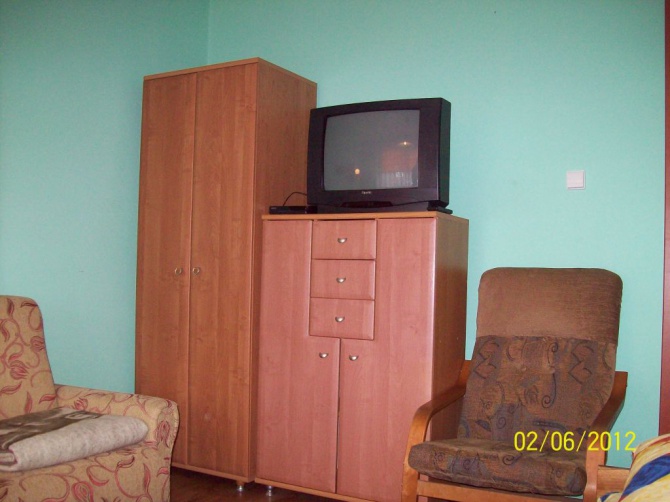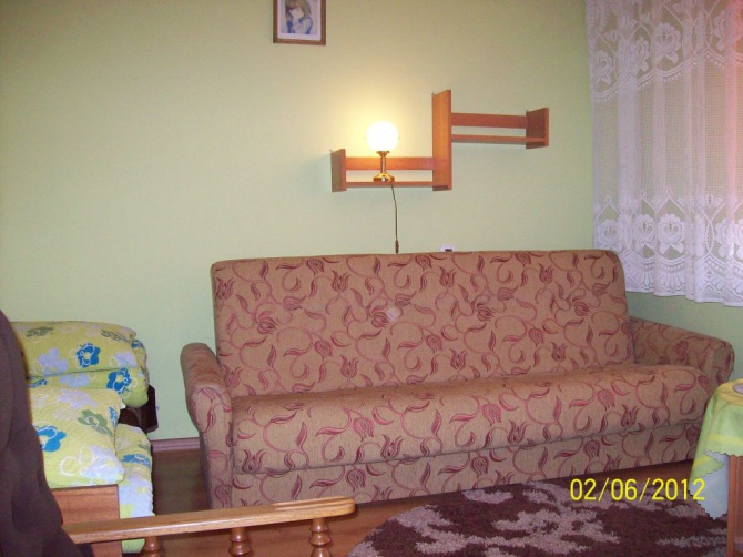 Udostępniamy 3 pokoje 2 osobowe wyposażone w wersalkę dwuosobową i tapczan. Łazienka jest wspólna na wprost pokoi, ale istniej możliwość korzystania z drugiej łazienki na parterze. W każdym pokoju jest telewizor z telewizją naziemną. Oprócz tego w każdym pokoju jest czajnik elektryczny, naczynia i sztućce. Dostępna duża lodówka i kuchenka mikrofalowa. Są leżaki i parawany.