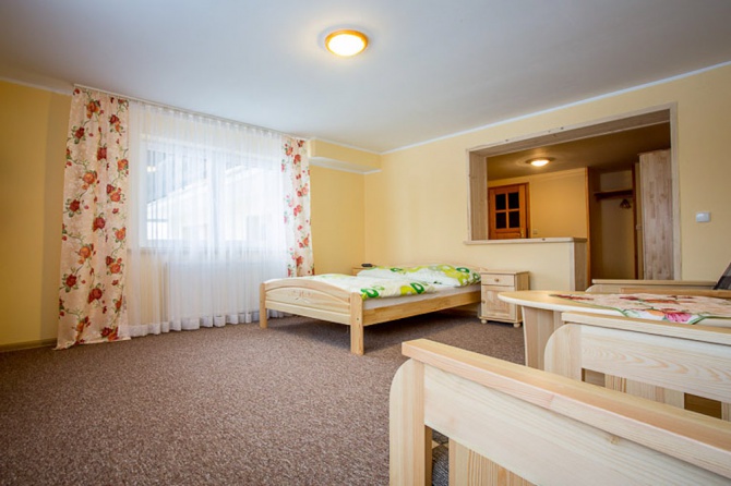 W Willi znajdziecie pokoje typu standard, wszystkie z łazienkami, a część z nich posiada balkon z widokiem na Giewont. Mamy również pokoje typu studio, na wyposażeniu których jest czajnik, lodówka, wszystkie są od strony Tatr, zatem można siedząc na balkonie podziwiać śpiącego Rycerza. Dysponujemy również apartamentem kominkowym, z ogromnym balkonem, prysznicem z hydromasażem i oczywiście kominkiem. Sala kominkowa to świetne miejsce na zimowe długie wieczory spędzane przy blasku ognia popijając herbatę z malinami. Dla naszych najmłodszych Gości przygotowaliśmy kącik zabaw, piłkarzyki czy stół do ping-ponga. Latem do dyspozycji naszych Gości jest ogromny, ogrodzony ogród z huśtawkami, grill, miejsce do gry w siatkówkę, mini piłka nożna.
