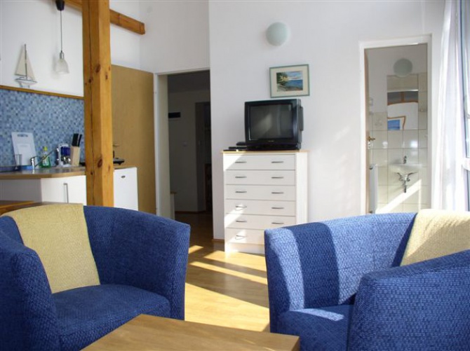 Przy aneksie kuchennym znajduje się wspólny kącik spotkań i zabaw. Jego walory docenią dzieci i rodzice w czasie niepogody. Znajdą Państwo w nim gry, książki i czasopisma oraz miejsce do wspólnej zabawy.