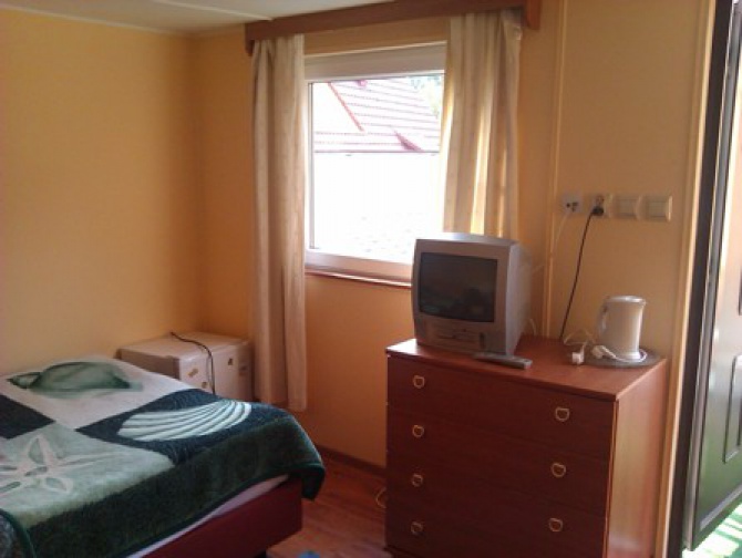 W domkach 2os jest podwojne lozko ,TV,lodowka,czajnik,naczynia i sprzet plazowy