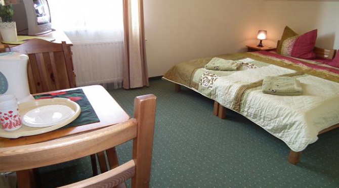 - pokoju 2, 3,4 osobowym z łazienką łóżka małżeńskie i pojedyncze