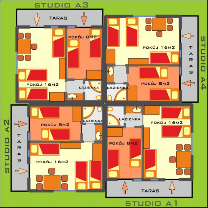 Studia 2-pokojowe z łazienką (do 5 osób, 3+2)
