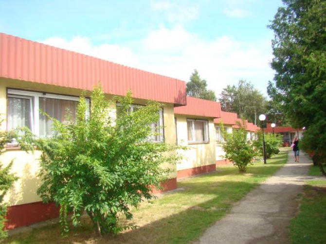 | 2-4 osobowe z łazienkami i TV w parterowych domkach o zabudowie szeregowej (standard turystyczny) | POKOJE oraz STUDIA 2-pokojowe (4-8 os.) z łazienkami, lodówkami i TV w pawilonie głównym – I piętro | ||||||
