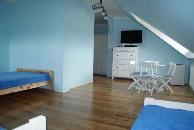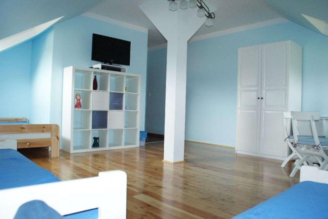 - w każdym pokoju lodówkę, czajnik, kubki, talerze, sztućce
