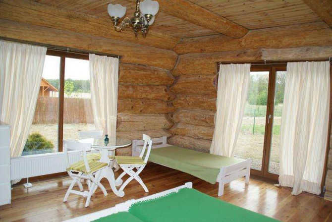 - pobyt w NOWYM domu wykonanym z bali modrzewia syberyjskiego, albo kamiennym parterowym domku również