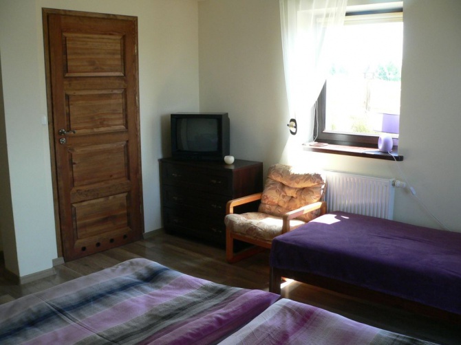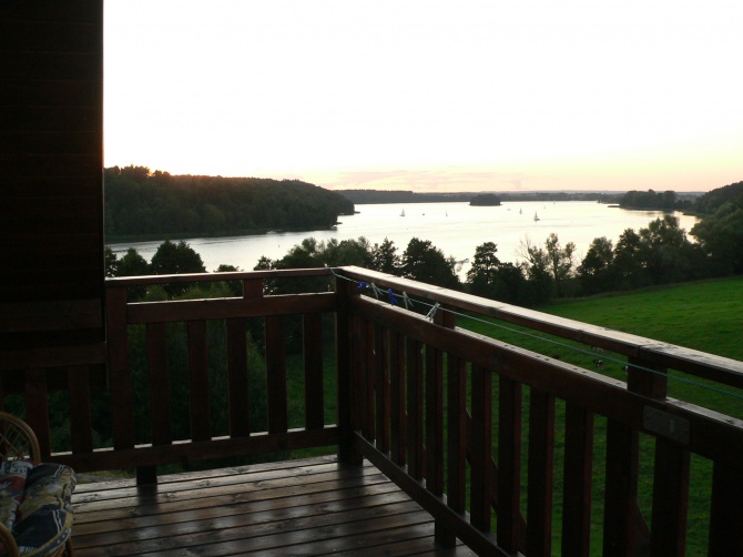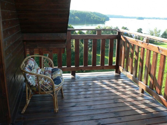 1. Przytulne pokoje 2 -, 3-, 4- osobowe w stylu retro. Wyposażone w łazienkę z prysznicem, TV-SAT, drewniane, przestronne tarasy z widokiem na panoramę jeziora Tałty i otaczające go lasy,