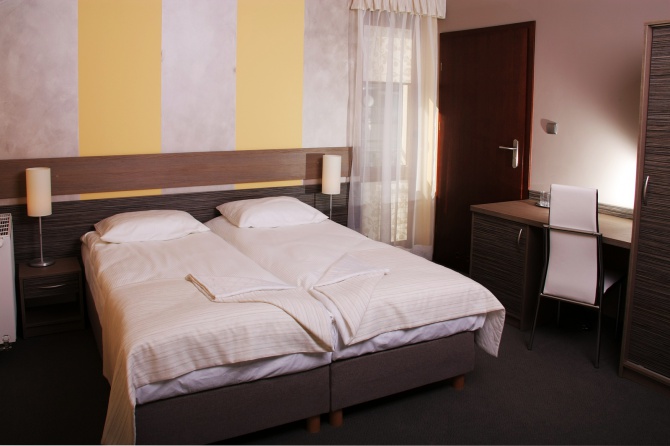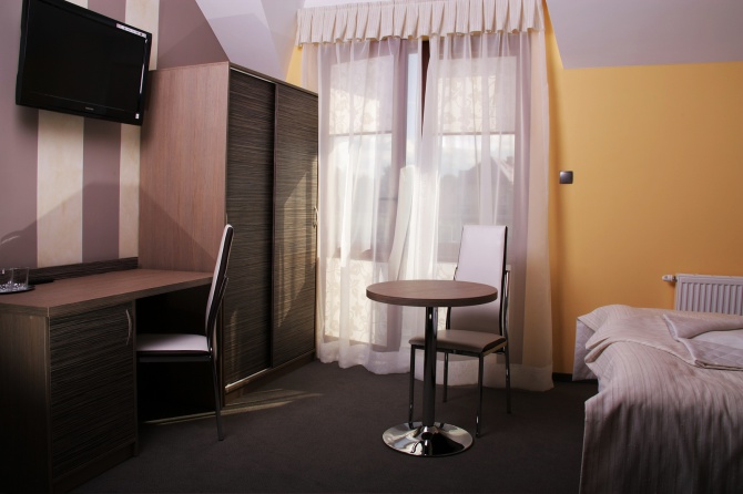 POKOJE - Naszym gościom oferujemy 12 przytulnych, dwuosobowych pokoi urządzonych w wysokim standardzie. Każdy z nich wyposażony jest w 32 calowy telewizor, minibar i sejf, który może zmieścić 15 calowy laptop.