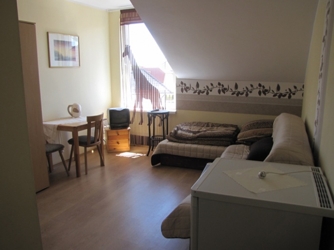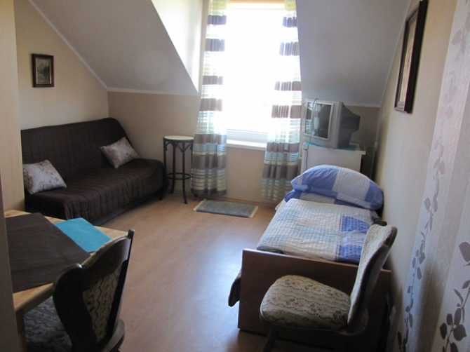 Oferujemy pokoje dwu, trzy, cztero osobowe oraz pokoje typu studio, w skład których wchodzą 2 pokoje ze wspólną łazienką mogące pomieścić 4,5 lub 6 osobowe rodziny.