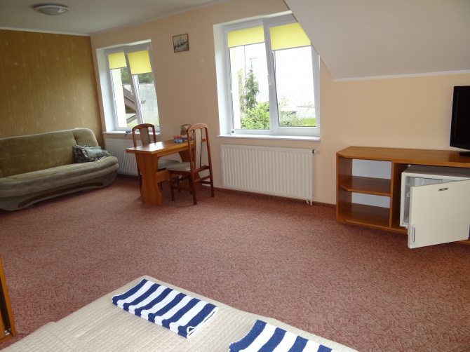 Sympatik jest kameralnym i nowoczesnym obiektem położonym na terenie o powierzchni 2000 m2 z dużą ilością zieleni,jego atutami są doskonała atmosfera,wygodny i przestronny parting samochodowy nie daleka odległość do centrum i morza ,bezpieczny i dobrze wyposażony plac zabaw,do dyspozycji gości ddobrze wyposażona sala rekreacyjna wygodne pokoje wszystkie wyposażone w łazienki TV,lodówki,czajnik bezprzewodowy Wi FI,,radio ,parawan ,obiekt przyjazny dzieciom