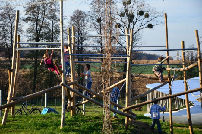 Dla dzieci przygotowano jedyne w swoimi rodzaju atrakcje: 14 metrowego Pana Wieloryba, który zaprasza dzieciaki do swojego brzucha oraz duże wiklinowe wigwamy połączone labiryntem. A dla starszych dzieci zainstalowano konstrukcję do wspinania. Na miejscu jest też piaskownica i duża trampolina. W deszczowe dni w kąciku zabaw, dzieci znajdą mnóstwo gier, książek i zabawek.