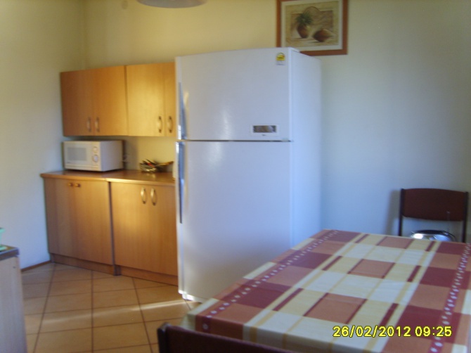 Kuchnia umeblowana i wyposażona : dwie kuchenki gazowe, lodówka, mikrofala, komplet naczyń.