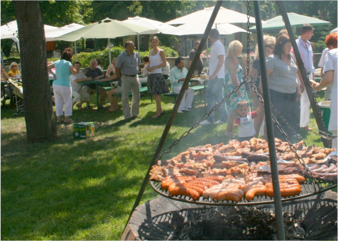 *letni Grill-Bar z pieczonymi kiełbaskami z dodatkami, piwami z beczek ;