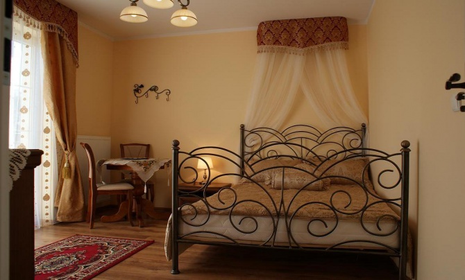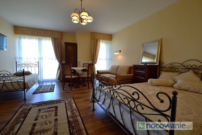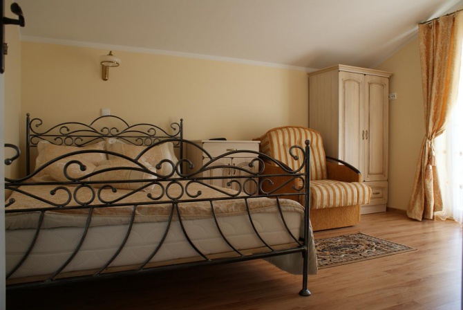 Oferujemy Państwu pokoje gościnne 2,3,4 i 5-cio osobowe których elegancki i stylowy wystrój wnętrz towarzyszy ciepłemu i przyjemnemu klimatowi naszej rezydencji. Każdy pokój połączony jest z gustownie urządzoną łazienką oraz wygodnym balkonem z ręcznie kutą balustradą z kowalstwa artystycznego, Dodatkowo pokoje wyposażone są w TV led 32'', lodówkę, sprzęt plażowy, czajnik bezprzewodowy, naczynia. Niektóre pokoje posiadają aneksy kuchenne (jednopalnikowa kuchenka indukcyjna, okap, zlew, zabudowana lodówka, mikrofalówka, garnuszki, patelnia itp). W pokojach znajdują się bardzo wygodne dwuosobowe ręcznie kute łóżka dwuosobowe o szer 140 lub 160cm z wygodnym materacem kieszeniowym lub stylowe kanapy na wysokiej jakości wkladach sprężynowych o powierzchni spania 150cm. Niektóre pokoje posiadają także łóżka jednoosobowe lub rozkładane fotele.