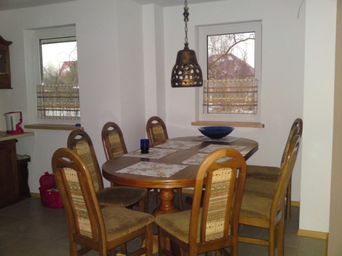 Do dyspozycji gości oddajemy 12 miejsc noclegowych w trzy/cztero-osobowych sypialniach oraz w części wspólnej: salon z kominkiem i kącikiem wypoczynkowym, aneks kuchenny, łazienkę, taras. Na zewnątrz parking na trzy samochody, miejsce na ognisko oraz atrakcyjna zielona przestrzeń, zagospodarowana specjalnie dla waszych pociech. Oferujemy miejsca noclegowe w jasnych, przestrzennych pokojach. Proponujemy wyżywienie we własnym zakresie. Kuchnia jest w pełni wyposażona, zaś jadalnia z salonem śmiało pomieści 12 osób.