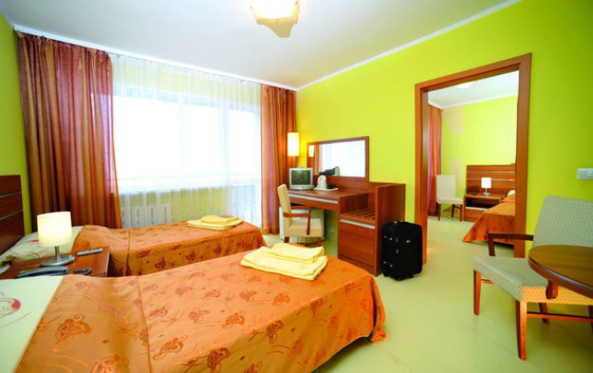 Zakwaterowanie: 450 miejsc w pokojach 1, 2, 3 osobowych z łazienkami, TV, lodówką, telefonem i balkonem.